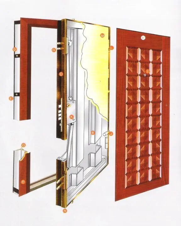 4.钢木门,价格适中,中间是木龙骨外面是钢板,表面贴了木纹饰面。优点是不易变形,环保、易清洁,价格低廉,缺点是非常沉,对合页和门框是一个考验,而钢木门的门套如果选用PVC贴膜的,久了可能有脱落的隐患,的造型和色彩一般比较呆滞。